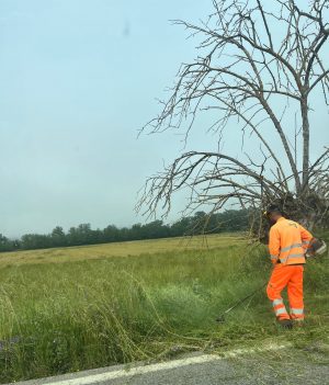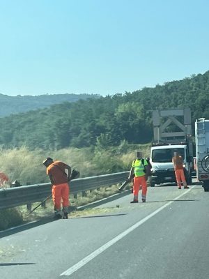 E’ festa, ma non per tutti. Se in tanti, visto l’week end festivo, hanno scelto di andare al mare, alcuni operai infatti sono a lavoro e stanno stanno tagliando l’erba lungo la Siena-Grosseto, nel tratto tra il bivio di Bagnaia e le risaie. Le interruzioni dovute al taglio hanno provocato il formarsi di file e rallentamenti in un traffico già molto intenso.