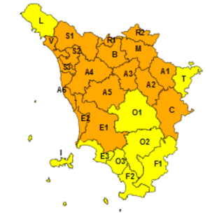 La Sala operativa della protezione civile regionale ha emesso un codice arancione per rischio idraulico del reticolo principale che, per l’intero venerdì 14, interesserà Valdarno inferiore, Val di Serchio, Garfagnana, area Ombrone pistoiese-Bisenzio e Mugello. Per rischio idrogeologico e idraulico del reticolo minore, il codice arancione, oltre che alle zone già indicate, è esteso a Versilia, costa etrusca e aree interne a ridosso e Valdichiana. Nelle aree centrali il codice sarà arancione anche per temporali.