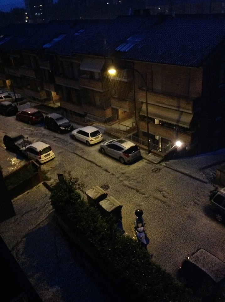 La grandine, caduta abbondante in Valdarbia, ha imbiancato i tetti delle case.