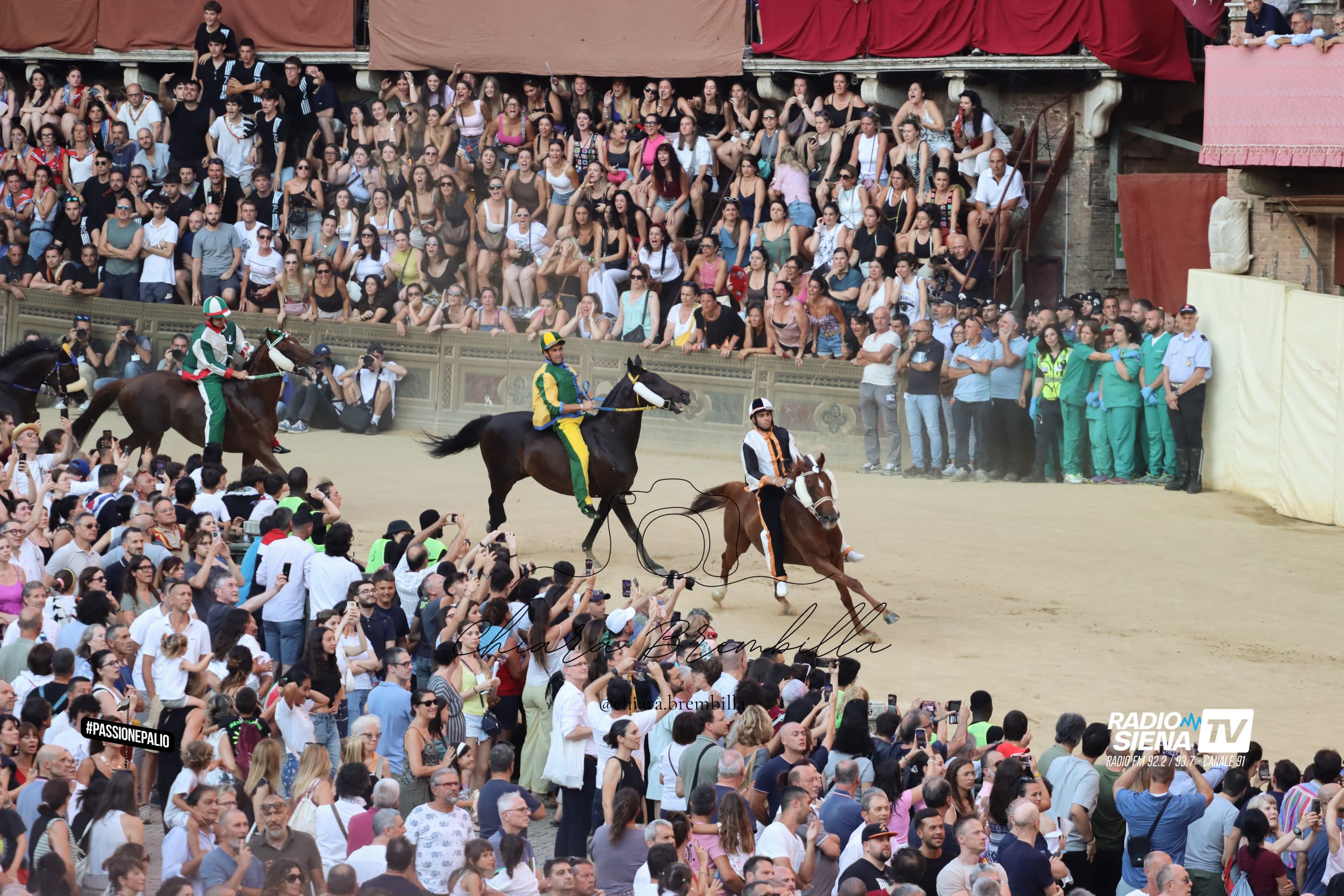 Alcuni scatti della terza prova del Palio di luglio 2025, che si è corsa ieri sera in Piazza del Campo, realizzati da Chiara Brembilla per Siena Tv.