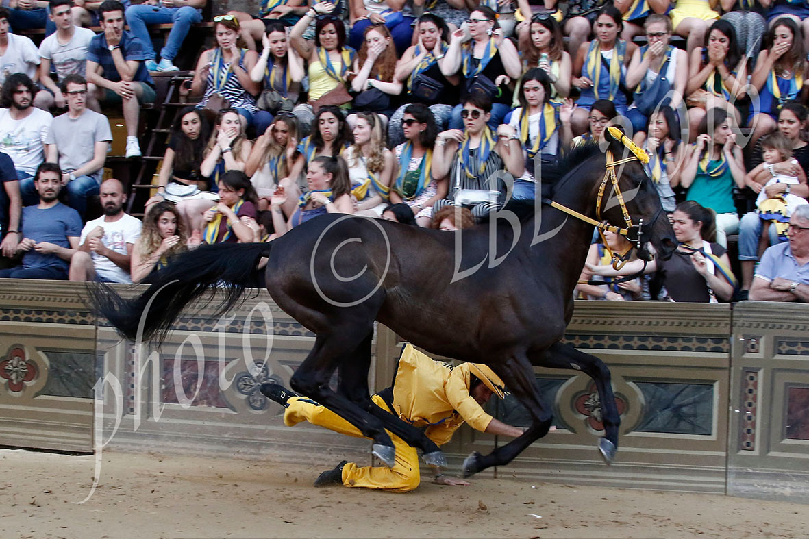Al momento dell’ingresso della Lupa dalla posizione di rincorsa, sono Tartuca e Aquila a prendere la testa, inseguite dall’Oca, ma alla prima curva del Casato, il fantino dell’Aquila Francesco Caria detto Tremendo stringe troppo, colpisce il bandierino e finisce a terra, mentre Renalzos prosegue la sua corsa, riesce a prendere la testa e vince la prova. Tremendo si rialza subito, in condizioni perfette ma molto arrabbiato.