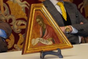 È stato presentato sabato 5 ottobre a Firenze, presso la Biennale Internazionale dell’Antiquariato, davanti ad un pubblico molto numeroso e attento, il progetto “Un Pietro Lorenzetti per Pienza. Il San Luca dal Polittico di Monticchiello” grazie al quale il Comune di Pienza ha potuto acquistare sul mercato antiquario un importantissimo dipinto, una piccola tavola triangolare a fondo oro, raffigurante l’Evangelista Luca a mezzo busto, opera di Pietro Lorenzetti (Siena, documentato dal 1306 al 1345), uno dei grandi maestri della pittura senese del Trecento.