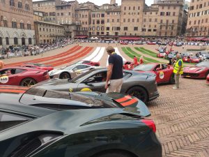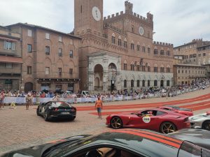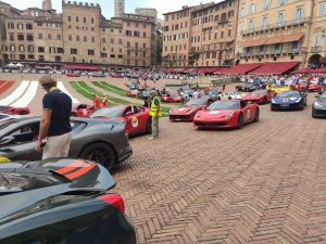 E’ un colpo d’occhio spettacolare quello che forniscono le auto della mille miglia in sosta in Piazza del Campo. La tradizione con questo appuntamento prosegue e sono molti i turisti che si sono fermati ad ammirare i veicoli sia sportivi che d’epoca che oggi hanno animato la città di Siena.