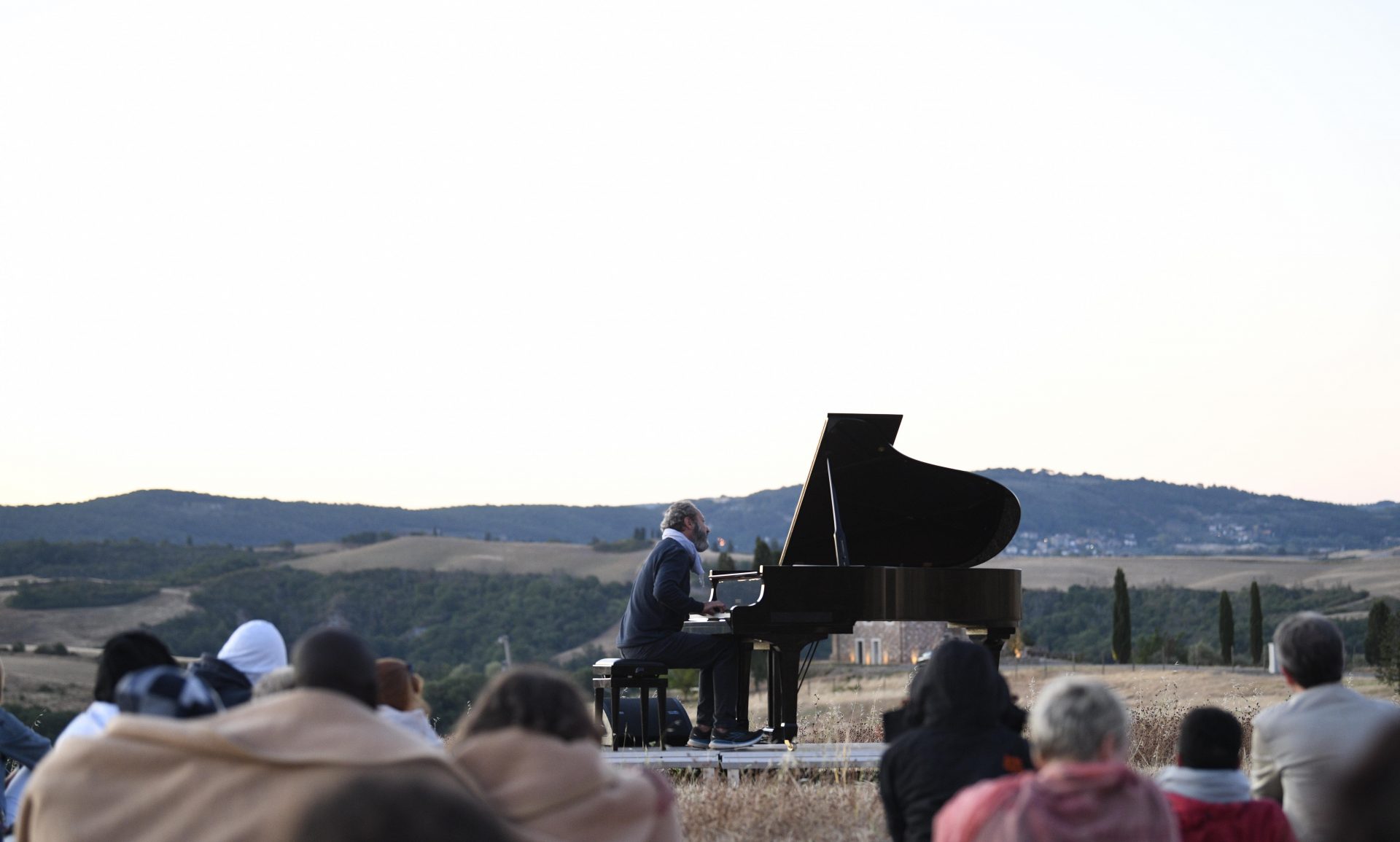 Questo luogo unico al mondo, regala al pubblico un modo nuovo di vivere e sentirsi parte della Natura delle Crete Senesi, per contemplare i suoni immersi nella luce del tramonto che cade sopra lo skyline di Siena.
