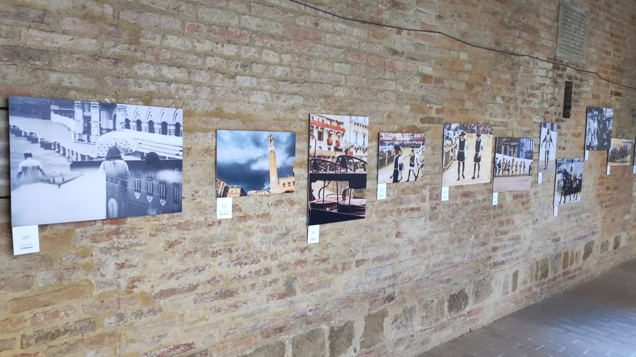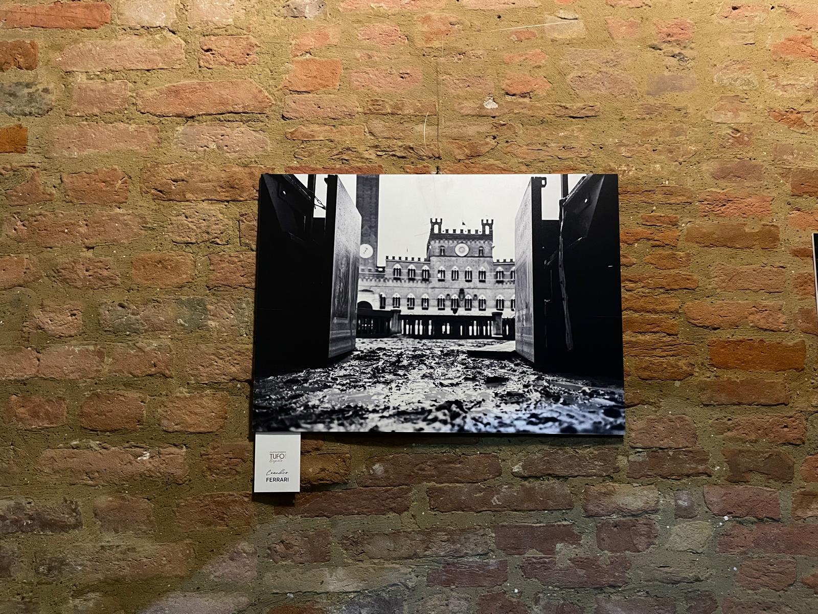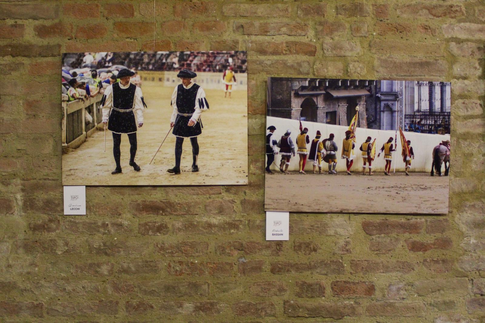 Lo storico evento, il doppio rinvio delle carriere del 2024 a causa della pioggia, è stato il tema ispiratore della mostra “Tufo Bagnato”, collettiva di quattordici apprezzati fotografi, senesi e non, che è stata allestita nello scorso fine settimana nel suggestivo Chiostro di San Cristoforo, a Siena.