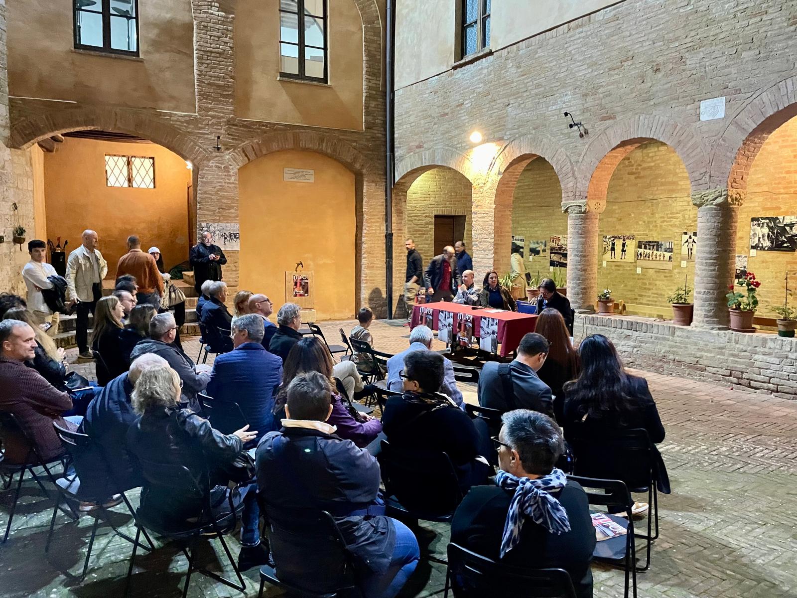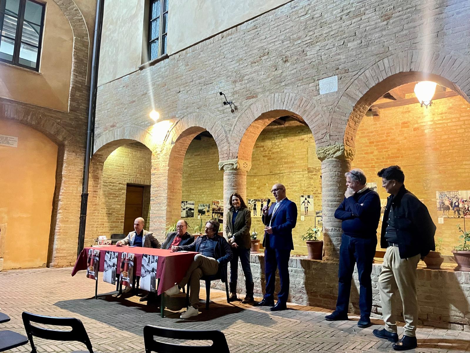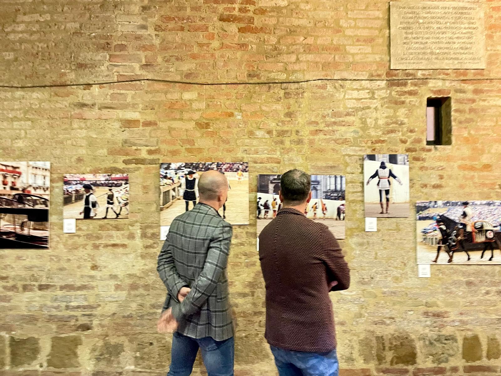 Lo storico evento, il doppio rinvio delle carriere del 2024 a causa della pioggia, è stato il tema ispiratore della mostra “Tufo Bagnato”, collettiva di quattordici apprezzati fotografi, senesi e non, che è stata allestita nello scorso fine settimana nel suggestivo Chiostro di San Cristoforo, a Siena.