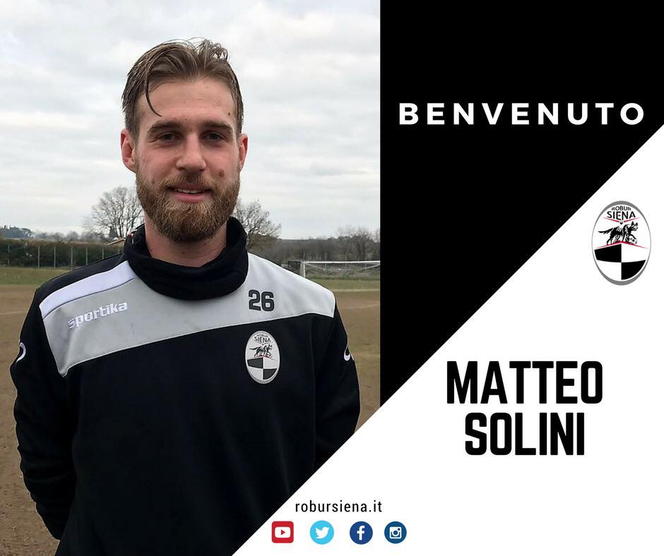Matteo Solini è un nuovo calciatore della Robur Siena. Difensore classe 1993, Solini arriva in prestito fino al 30 giugno 2019 dal Chievo. Cresciuto nel settore giovanile dei clivensi, Matteo ha all’attivo 89 presenze in serie C con tre reti segnate. Solini ha vestito le maglie di Castiglione, Reggiana, Real Vicenza, Renate, Arezzo e Modena.