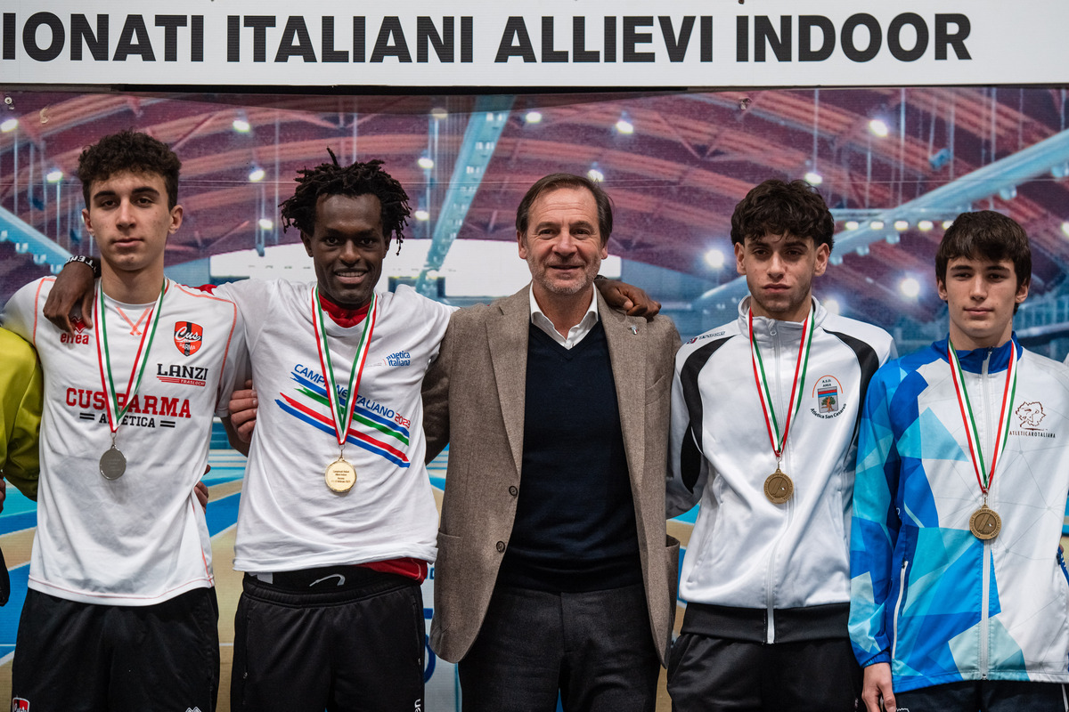 Nei 1500 il portacolori del club senese prova la doppietta, ma lo scontro con il lombardo Manuel Zanini – campione italiano in carica di categoria all’aperto, recentemente giunto al primato indoor U18 di 3’55″81 – diventa un’appassionante duello per alcuni giri tra i due attesi protagonisti, fino a quando Zanini nell’ultima parte di gara pone un cambio di ritmo perentorio che gli regala il successo in 4’00″02 contro 4’03″75.