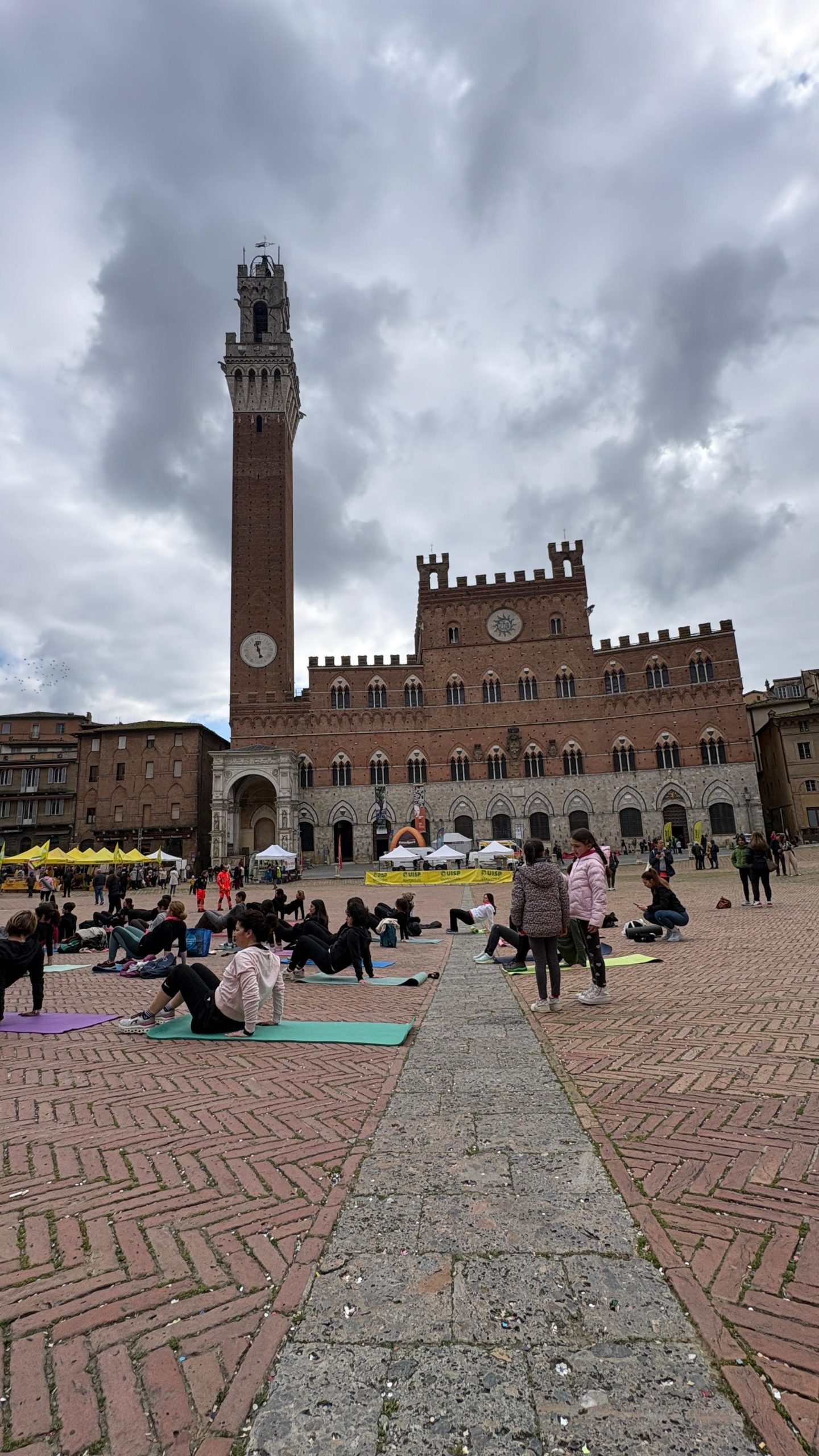Una Piazza del Campo diversa dal solito (e bellissima!), animata non solo dai turisti ma dai cittadini, dai tappetini da fitness, dalla musica e da un’idea semplice e potente: lo sport come strumento di socialità, salute e solidarietà. È questo il volto della giornata che ha preceduto la Terre di Siena Ultramarathon, grazie alla collaborazione tra UISP Comitato di Siena, le Palestre di Siena e la Fondazione Umberto Veronesi, che hanno trasformato la piazza simbolo della città in uno spazio vissuto e condiviso.