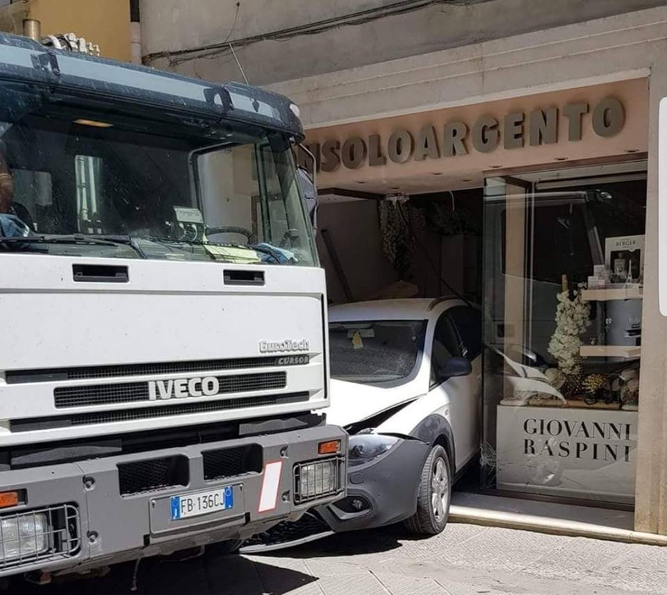 Un camion per la raccolta della carta ha seminato il panico nel pomeriggio di martedì 24 luglio in via Maestra, a Poggibonsi. Si è fermato solo dopo aver colpito un’auto che è andata a distruggere la vetrina del negozio “Nonsoloargento”.