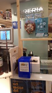 nella foto, Vanna Galli, presidente QuaViO, scrive una dedica all’interno di una copia del libro