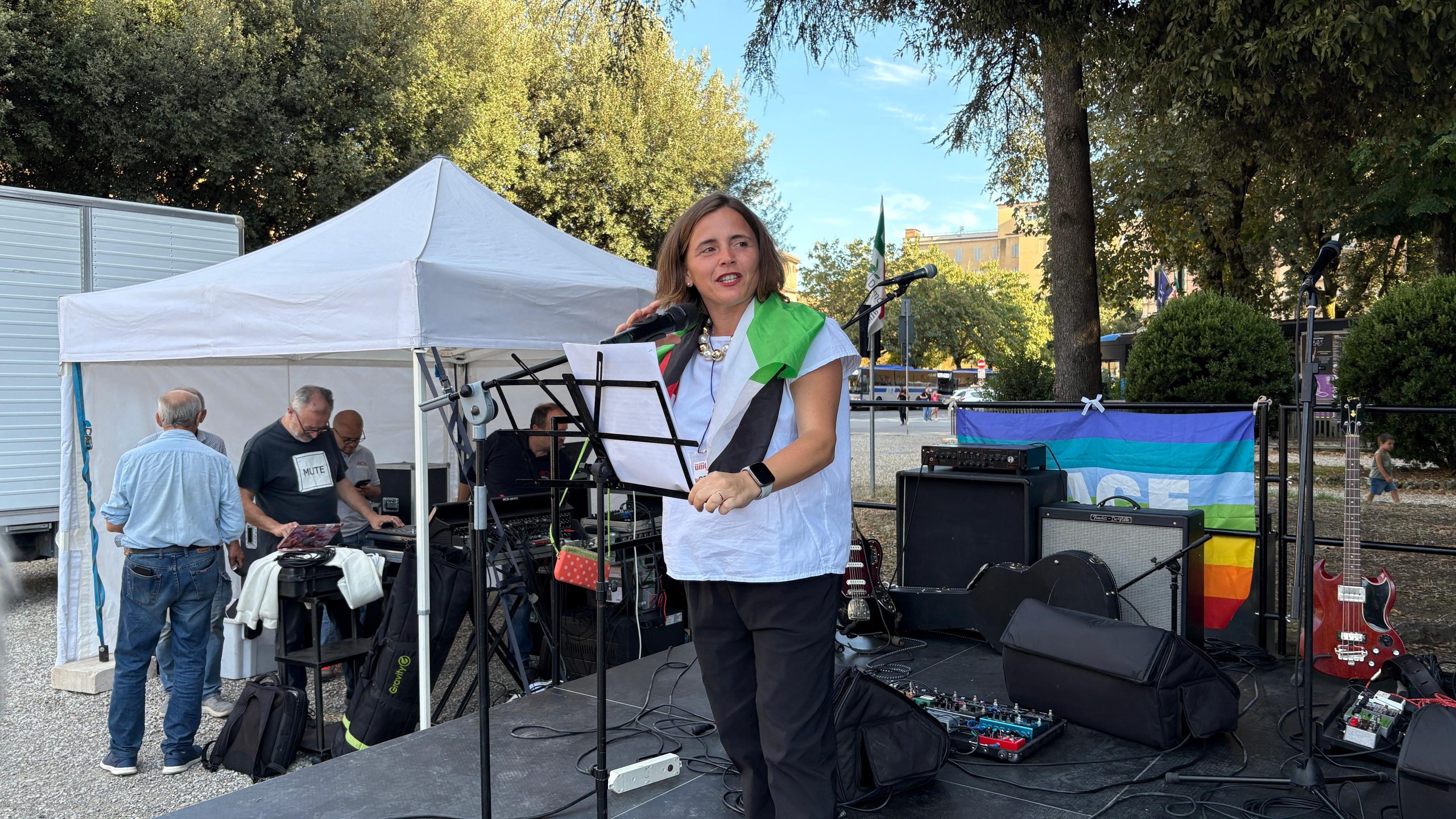 Visibilmente emozionata, la segretaria comunale del PD di Siena, Rossana Salluce, ha aperto così la manifestazione: “Era il modo migliore per iniziare la nostra festa, per ritrovarci come comunità sotto la bandiera della pace, per dire no a tutte le violenze, al genocidio in corso a Gaza e a tutte le guerre che sono in corso dappertutto in questo momento. Io sono molto emozionata, e soltanto rinascere qui, ricominciare, anzi qui è un nuovo capitolo anche del nostro partito ed è importantissimo. Vedere tanta gente che è venuta qui da noi è una cosa emozionante. Spero che anche nei prossimi giorni ci sia tanta partecipazione ai nostri dibattiti e al nostro ritrovarci”.