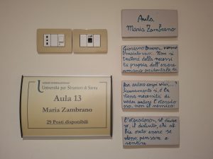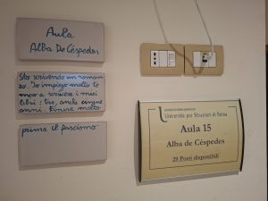 Un’occasione doppia perché in contemporanea sono state scoperte delle iscrizioni delle intellettuali de Céspedes e Zambrano apposte fuori da due aulee dell’Ateneo, aulee a loro intitolate.