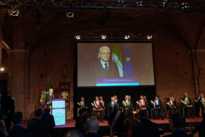 “Voglio rivolgere un saluto di grande cordialità a tutti i presenti, ai senesi, alle autorità, al corpo accademico, al personale tecnico e amministrativo e particolarmente agli studenti e alle studentesse – è stata la premessa – Ringrazio il Rettore per l’invito. L’idea che la vita sia costruita da una successione di eventi ordinati è sempre stata una illusione, anche nei tempi meno veloci come quelli attuali, questo provoca naturalmente quel senso di incertezza, di insicurezza, di fronte all’incubo kafkiano non confinato nella lettura contro i sentimenti di insicurezza vi è solo un antidoto che è quello messo in opera da Antonio Cassese. Alcuni punti fermi della convivenza. Lei Rettore ha esposto l’impegno della sua università ha toccato alcuni punti che vorrei riprendere velocemente che consentono una verifica sul campo di questi principi. La condizione di disabilità, i profughi afghani, la pandemia sono tutti elementi che hanno condotto ad una riflessione sui comportamenti da tenere e da assumere. Sul primo tema abbiamo compiuto nel nostro Paese molti passi avanti” ha affermato.