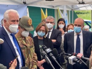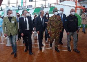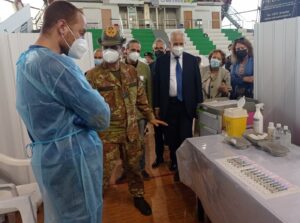 “L’Italia che fa squadra vince e qui oggi ho visto lavorare la squadra Italia, con la capacità di mettere insieme associazionismo, Protezione civile, Forze armate, Regione, Asl, medici anche in pensione o giovani reclutati per questa attività, infermieri, personale amministrativo. Ho visto la capacità di fare squadra e questo è vincente”. Così il generale Francesco Paolo Figliuolo, commissario straordinario per l’attuazione e il coordinamento delle misure di contenimento e contrasto dell’emergenza epidemiologica Covid-19 e per l’esecuzione della campagna vaccinale nazionale, al termine della visita al PalaGiannelli, hub principale della campagna vaccinale per la provincia di Siena.
