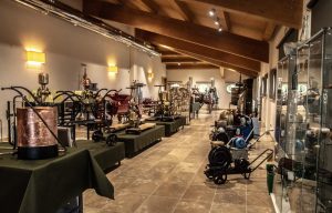 La sezione enologica con le pompe, le prime raccolte qui sono di fine ‘800, si tratta di pompe a bilancino manovrate da due persone, passando per quelle che fanno parte dell’evoluzione meccanica che inizia ai primi del Novecento. Nella stessa area, filtri, presse, torchi, bilance. E ancora, macchine di spumantizzazione, una primissima imbottigliatrice, un’etichettatrice. Incuriosisce la ricostruzione di un laboratorio dell’enologo con oltre 30 oggetti tra bilance, ampolle, microscopi, colonna refrigerante, bicchiere da assaggi, etc. raccolti presso vari laboratori d’analisi vino e che risalgono alla fine dell’Ottocento, alcuni di questi, soprattutto le vetrerie, sono ancora in uso: pipette, matracci, burette, cilindri graduati.