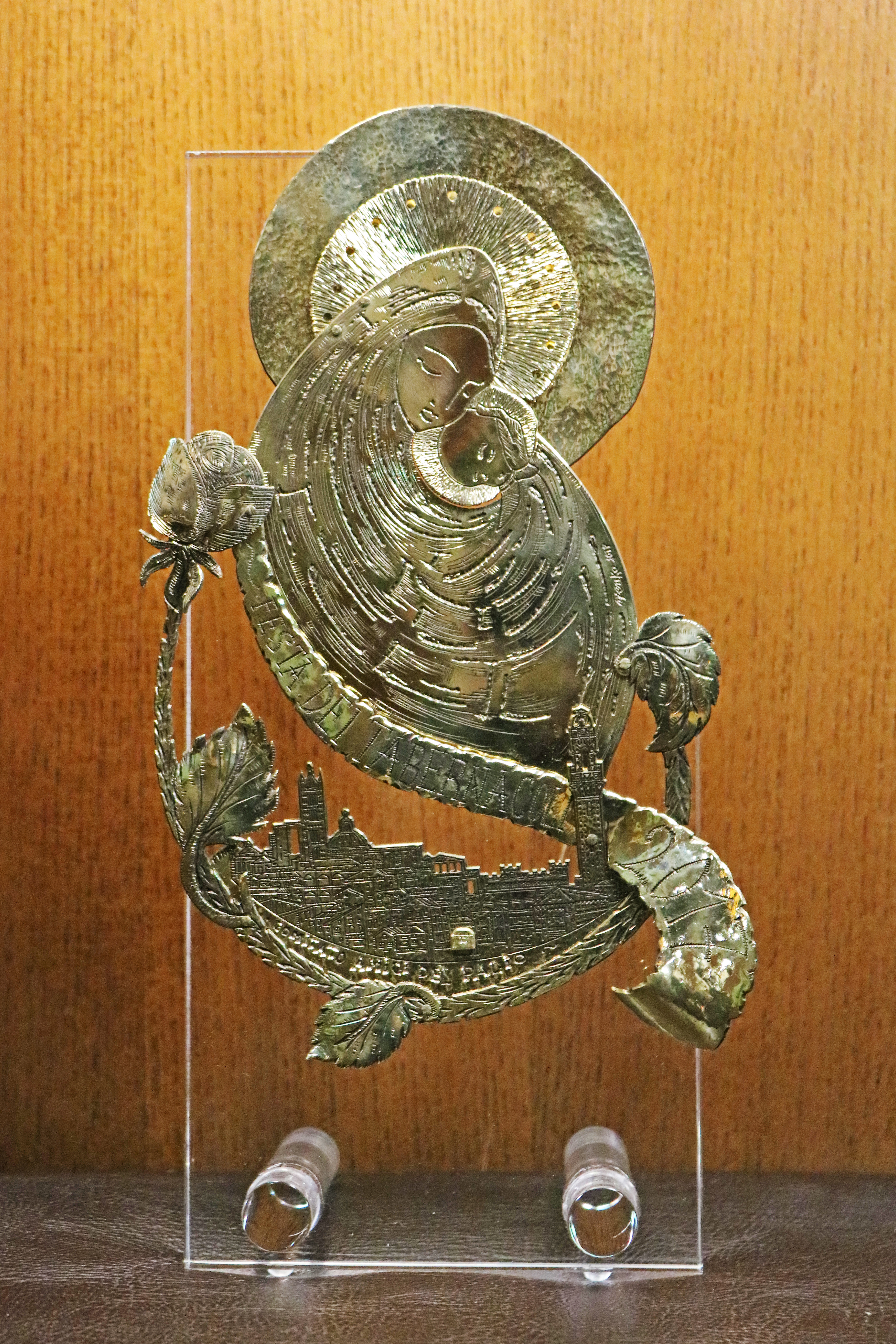 Un’ opera che sa di storia e d’arte, come la città di Siena, e che verrà donata per la Festa dei Tabernacoli l’8 dicembre prossimo, è stata forgiata dalle sapienti mani di Paolo Penko, l’artista orafo a cui si deve il Masgalano 2017. L’ opera, traforata e lavorata con incisione a penkato, racchiude in sé l’immagine della Vergine col Bambino protettrice della città di Siena, insieme all’ attributo che la rende tale: il riconoscibile e splendido profilo della città. L’intera scena figurata è accompagnata da un cartiglio che svolazza libero al vento, come un labaro in piazza del Campo, e che rende esplicita, con una frase incisa, la motivazione del dono. La luminosità dell’opera si deve non solo ai lievi tocchi dorati, stesi quasi a mo’ di pigmento dipinto, ma anche al gioco dei pieni e dei vuoti che, nel formare il prezioso clipeo, fa della luce un elemento proprio del gioiello e rimanda al significato di luce sacra, di spirito santo a protezione della città di Siena, ivi raffigurata, e , insieme, di colui che tale medaglia riceverà. In questo oggetto d’arte suntuaria dal disegno moderno e vibrante, l’icona mariana e l’immagine di Siena ritrovano ancora, grazie all’arte del suo artefice e ai rimandi di devota tradizione, un medium che le unisce per sempre.