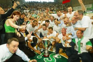 La stagione 2003-2004 fu una cavalcata quasi perfetta per la squadra allenata da Carlo Recalcati. Dopo aver chiuso la regular season al primo posto con un bilancio di 26 vittorie e 8 sconfitte, la Mens Sana dominò i playoff. La fase finale fu un’autentica dimostrazione di forza, con i biancoverdi che vinsero tutte e nove le partite disputate.