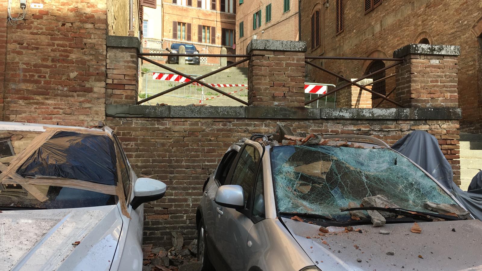 Paura in Vicolo della Fortuna, dove alcune tegole si sono staccate dal tetto di un edificio abbattendosi su una macchina parcheggiata. L’impatto ha provocato gravi danni al veicolo.
