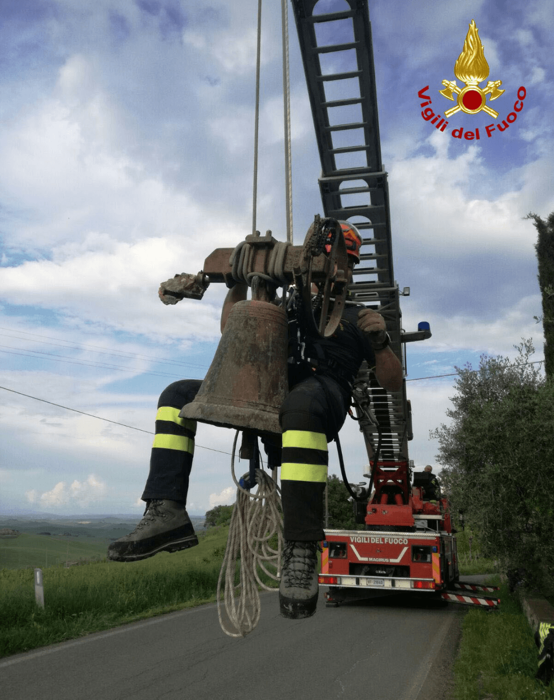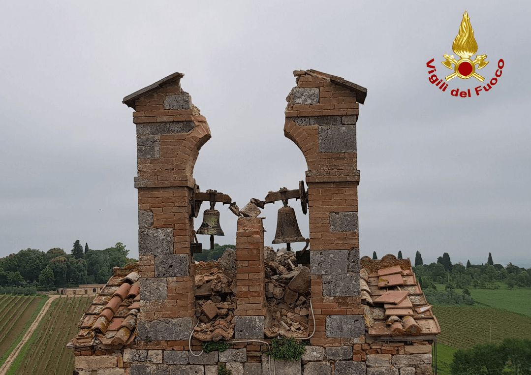 I Vigili del Fuoco del Comando di Siena sono intervenuti ieri a Monteroni d’Arbia, Località Ville di Corsano, presso la Chiesa di San Giovanni Battista, per la messa in sicurezza della vela della torre campanaria.