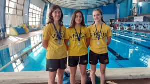 Altre medaglie d’argento sono arrivate da Benedetta Cittadini nei 100 dorso e da Viola Petrini nei 50 farfalla mentre la solita Maya Bonanni ha preso il bronzo sia nei 400 misti (altro pass per lei) che nei 200 stile libero; Arianna Sparvieri ha conquistato un argento nei 100 e un bronzo nei 50 farfalla, mentre sul podio dei 50 farfalla è salita anche Beatrice Borrelli e su quello dei 200 rana, a sorpresa, Sara Rocchigiani (2007). Nei 200 stile libero Viola Petrini è tornata a nuotare un buon crono, qualificandosi per i nazionali anche in questa gara, mentre la Costagli lo ha fatto nei 400 misti. Nella terza giornata di gare c’è stato posto anche per la miglior prestazione femminile di Lisa Angiolini nei 50 rana (30’’6) e per il bronzo della Cittadini nei 200 dorso. L’unica gara maschile in programma era quella dei 1500 stile libero e Matteo Mannelli è voluto salire anche lui sul podio con il suo nuovo P.B. sulla distanza. La Virtus Buonconvento è tornata a casa con quasi 50 medaglie e un numero impressionante di qualifiche per i prossimi Criteria nazionali, oltre a un solido gruppo che parteciperà agli Assoluti primaverili di nuoto; nel prossimo week-end a Firenze toccherà ai maschi tenere il passo imposto dal settore femminile giallonero.