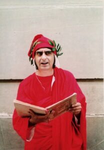 Nell’anno delle celebrazioni dei 700 anni dalla morte di Dante, Alberto Brogi propone un’esilarante lettura ed interpretazione della Divina Commedia, in una versione completamente surreale e stravolta. Brogi vestito da Sommo Poeta, ne decanta i versi, cercando di riportare in vita lo spirito con cui la Commedia fu concepita, attualizzandola e contestualizzandola anche con i nostri giorni.